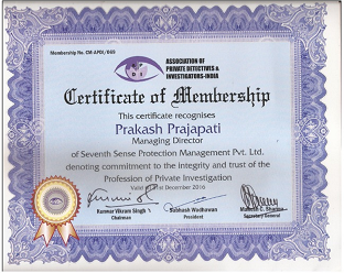 we are the only investigation agency which holds ISO Certification in Gujarat. We are also a member of the APDI (Association of Private Detectives and Investigators, India.)